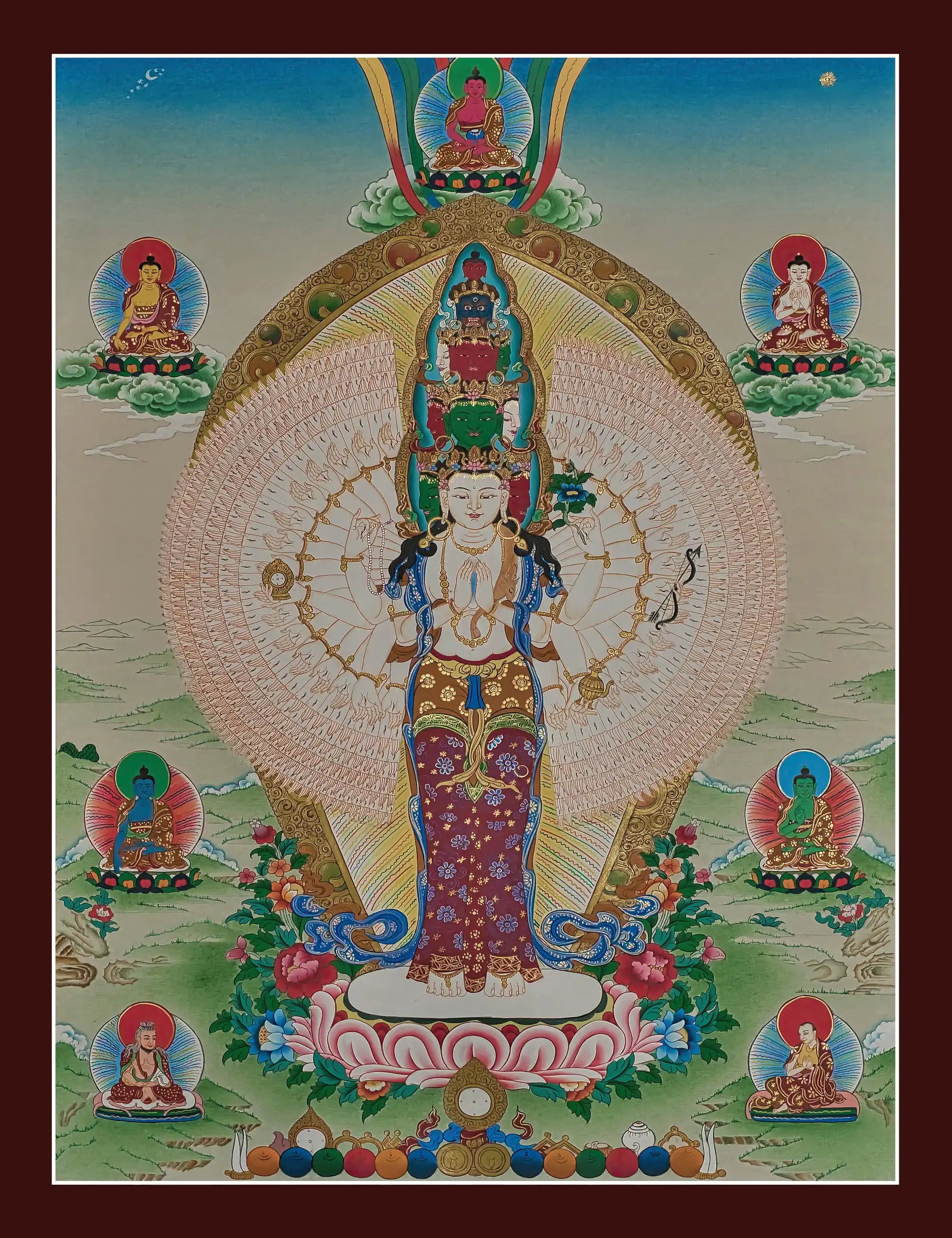 - Avalokiteshvara Thangka (1000 Arms) | 5 Dhyani Buddhas